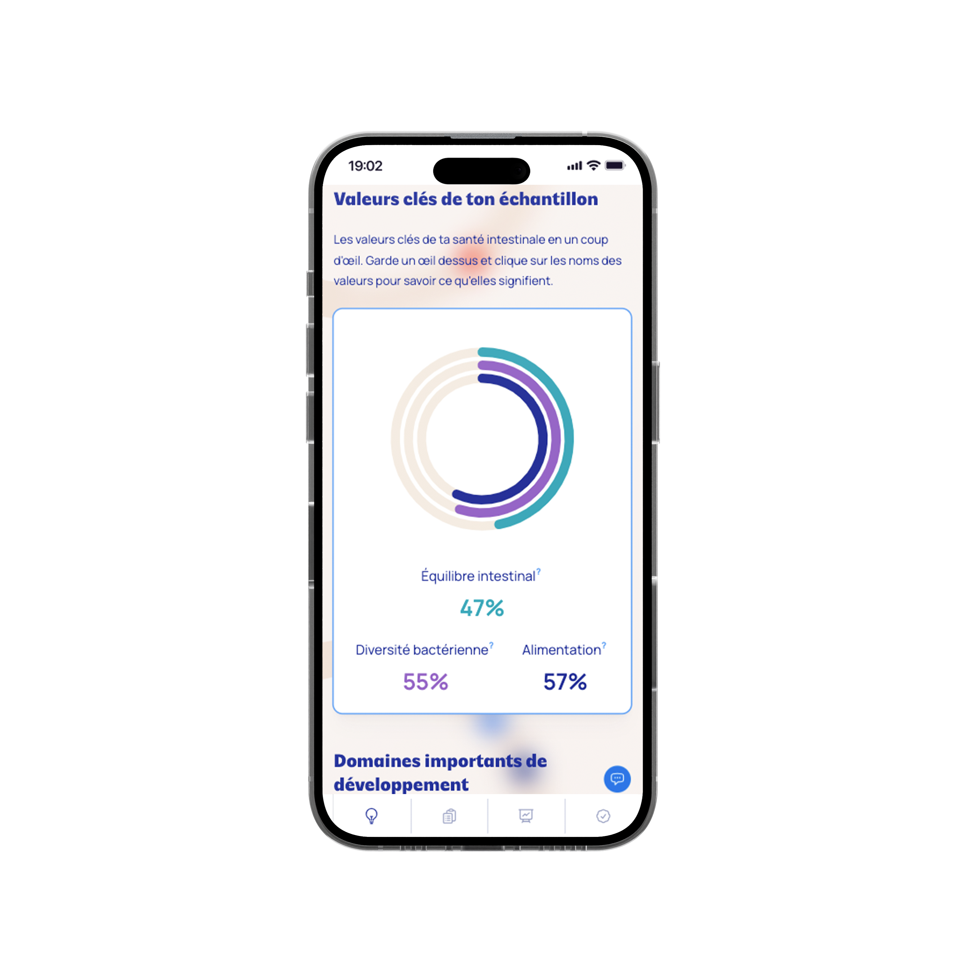3. Personnalisation : Vous recevez des informations personnalisées pour améliorer votre santé intestinale, essentielles pour une bonne digestion et un système immunitaire fort.